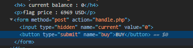 hidden 으로 처리된 value 값이 0으로 되어있다. 이걸 6969원(?)으로 바꿔주면 풀린다.