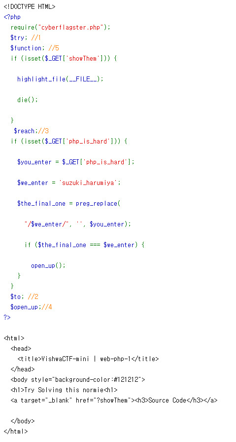근데 preg_replace 함수가 있어 suzuki_harumiya를 php_is_hard 변수에 넣을경우 아무것도 안나온다.