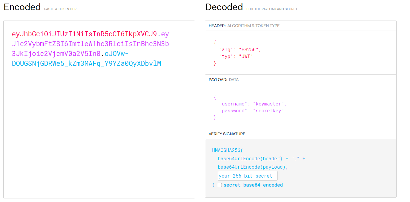 페이로드에 keymaster 와 secretkey 라는 단어가 나온다.