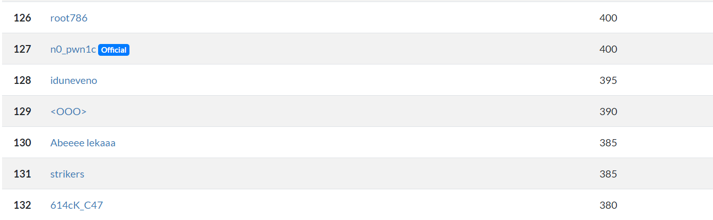 이 대회는 129등으로 마무리 했지만.. 좀만 더 열심히 공부할껄 이라는 생각이 많이 든다.